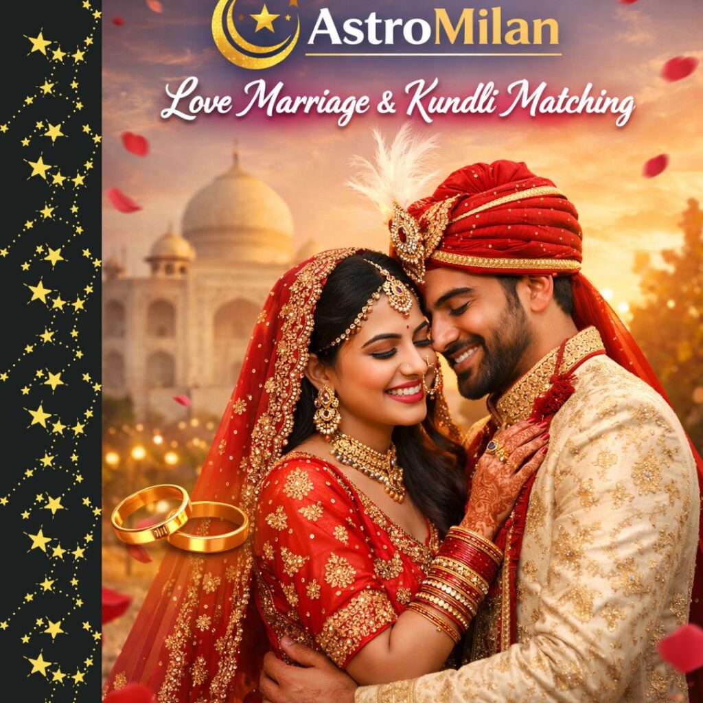 AstroMilan mein love marriage ke liye grah sthiti, dasha aur anukool yogon ka gahan vishleshan kiya jaata hai.
