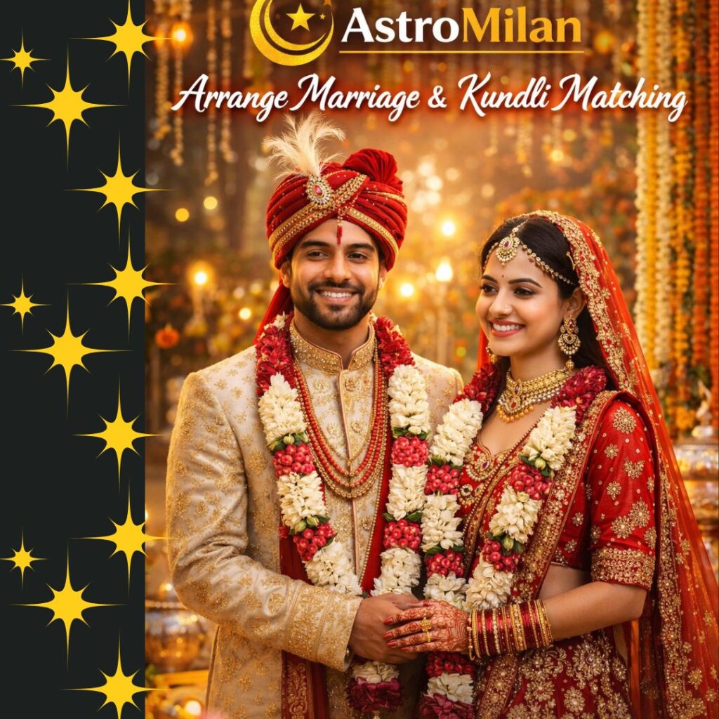AstroMilan mein arrange marriage ke liye kundli milan, gun-dosh vishleshan aur bhaavi saamanjasya ki gahan jaanch ki jaati hai.